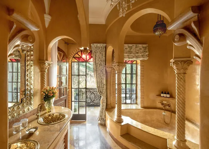 La Sultana Marrakech offers a luxurious outdoor swimming pool and a serene spa featuring massages. Just a 10-minute walk from Jamaâ El Fna Square, it features elegantly designed rooms with Moorish décor and luxury marble bathrooms. Guests can enjoy traditional Moroccan dishes, including tagines, and relax on the rooftop terrace with stunning views of the Atlas Mountains. Additional amenities include a gift shop, tour desk, and free Wi-Fi. Conveniently located in the Kasbah district, the hotel is a 16-minute stroll from the historical Dar Si Said Museum.